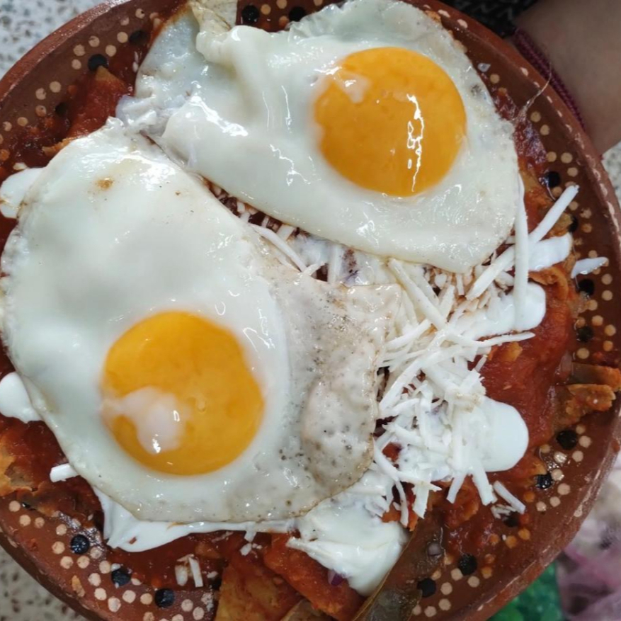 Chilaquiles rojos con huevo estrellado