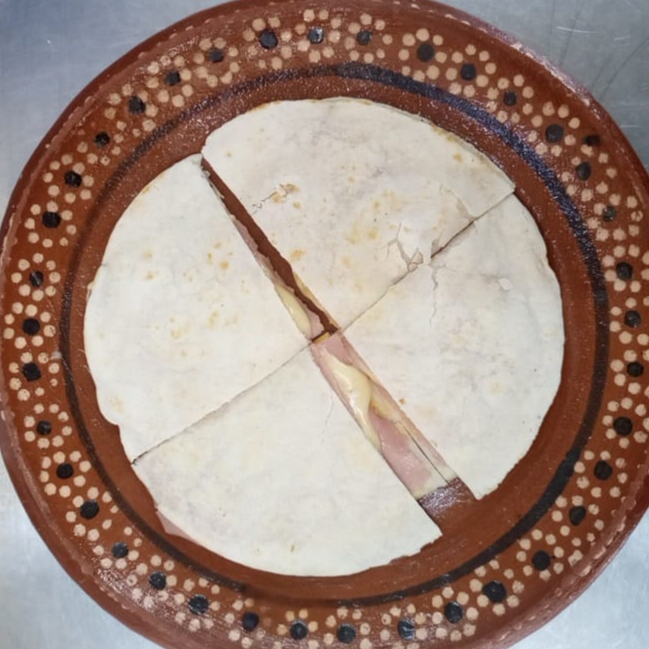Sincronizada con tortilla de harina preparada con jamon y queso