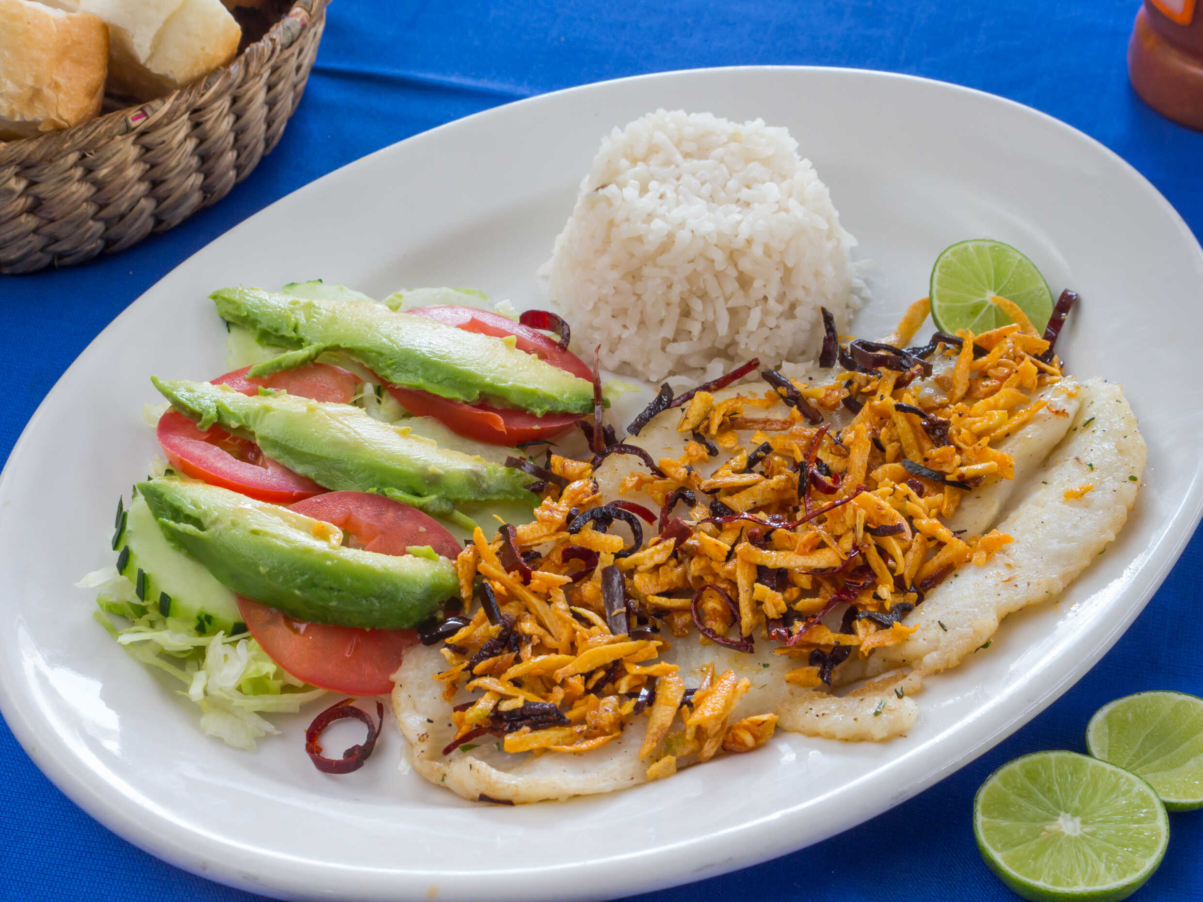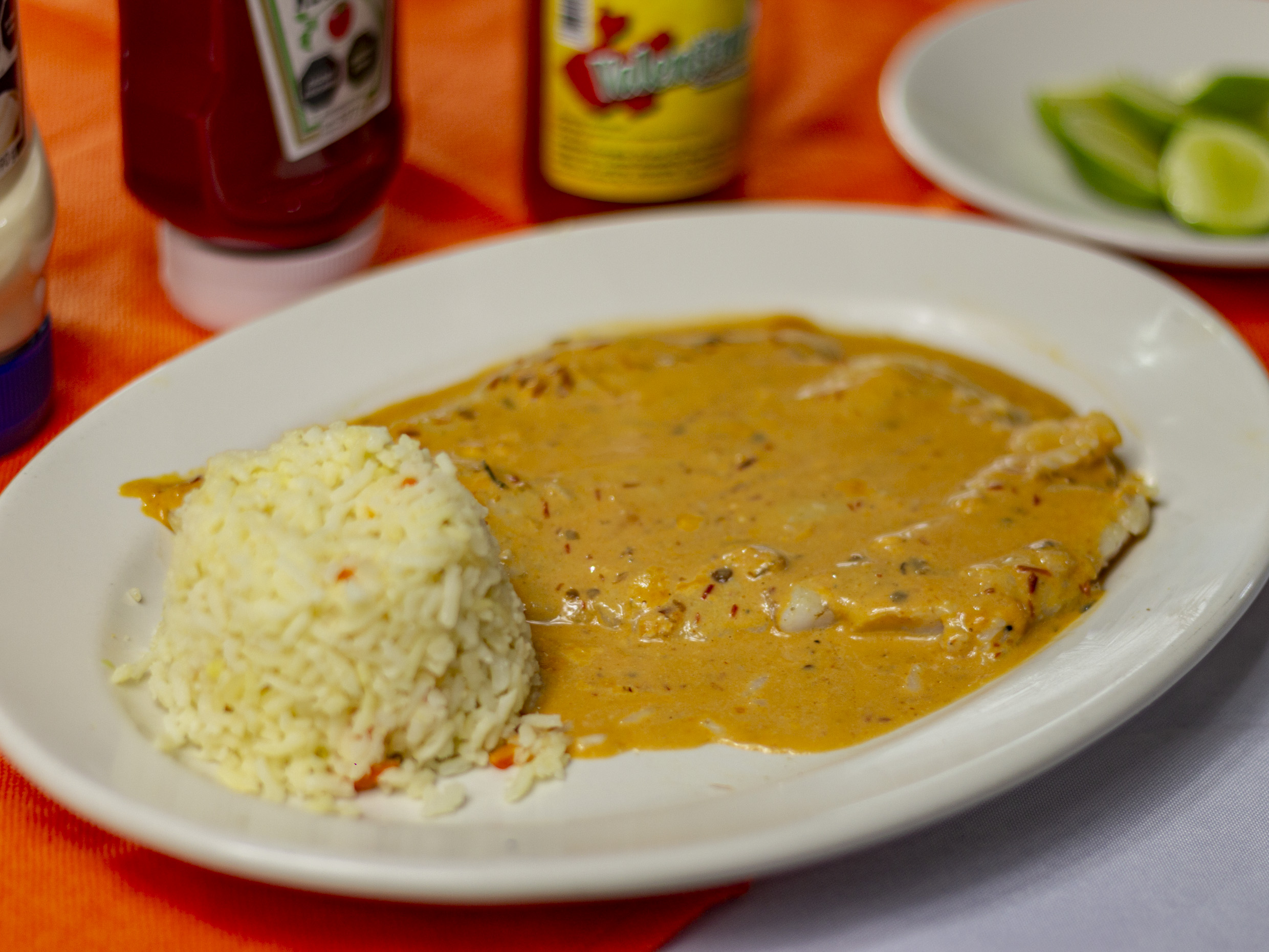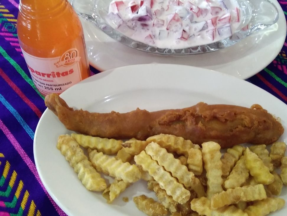Mojarra chica 500gms. Cóctel chico de camarón, Coca Cola, sangría señorial o manzana.