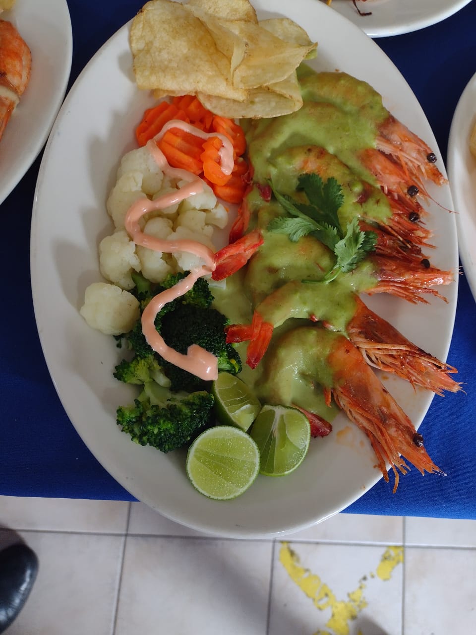 Coctel chico, camarones Philadelphia, chongos, duraznos, pie de limón o flan.