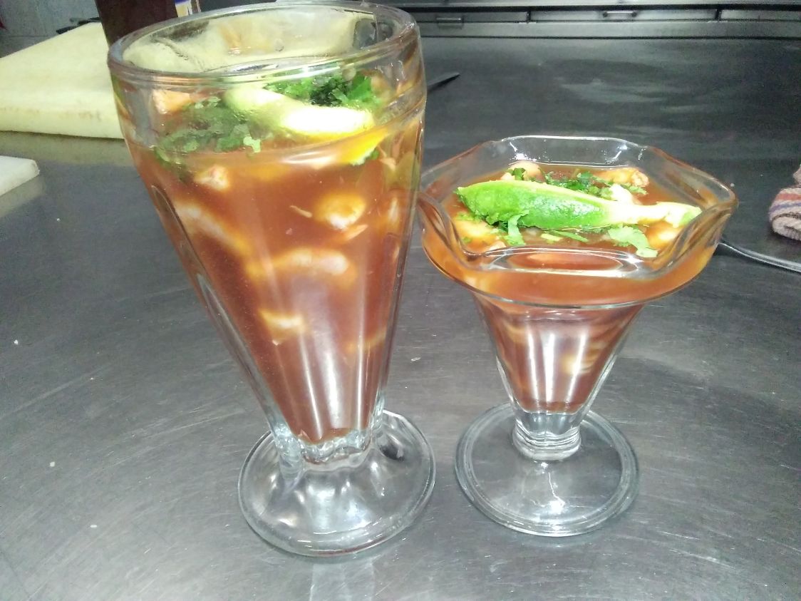 Coctel Chico ,Caldo de Camaron ,Chongos,Duraznos pie de limón o Flan