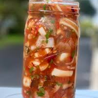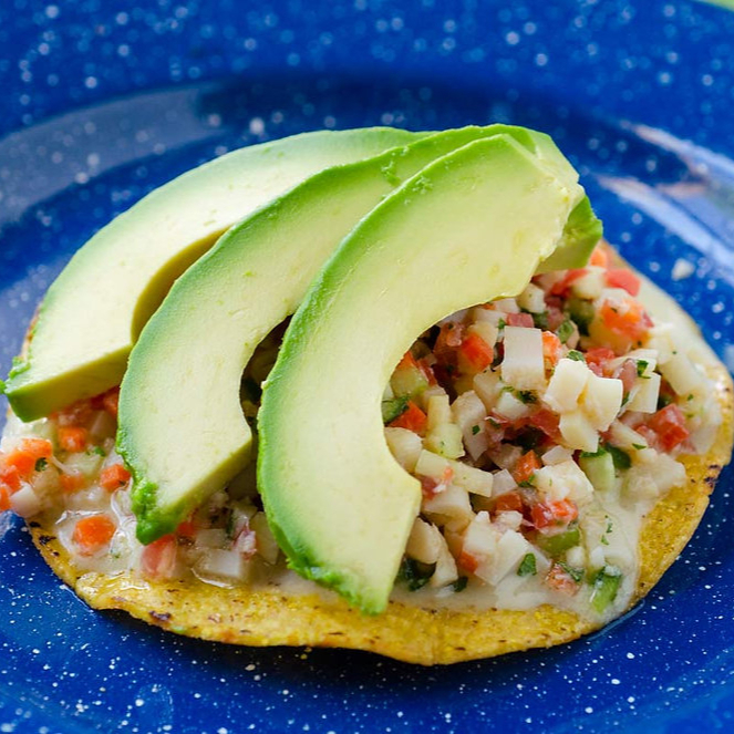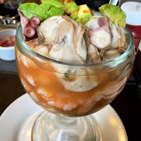 Camarón, pulpo, calamar, surimi y ostión salteados con pimientos, cebolla y tortillas de harina.