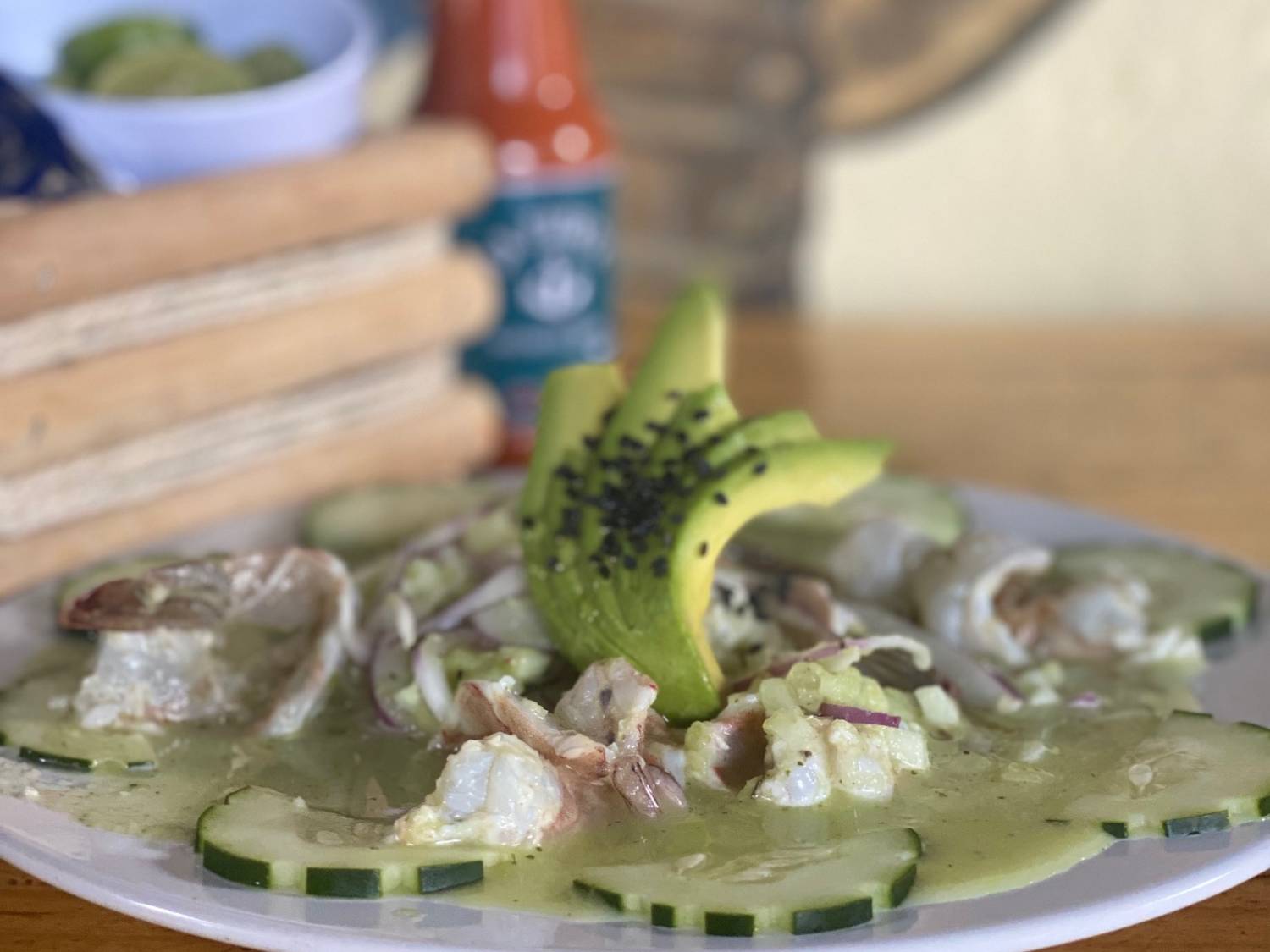 10 a 12 Piezas de camarón cristal preparados con nuestra salsa verde estilo urbano, cebolla morada y pepino.