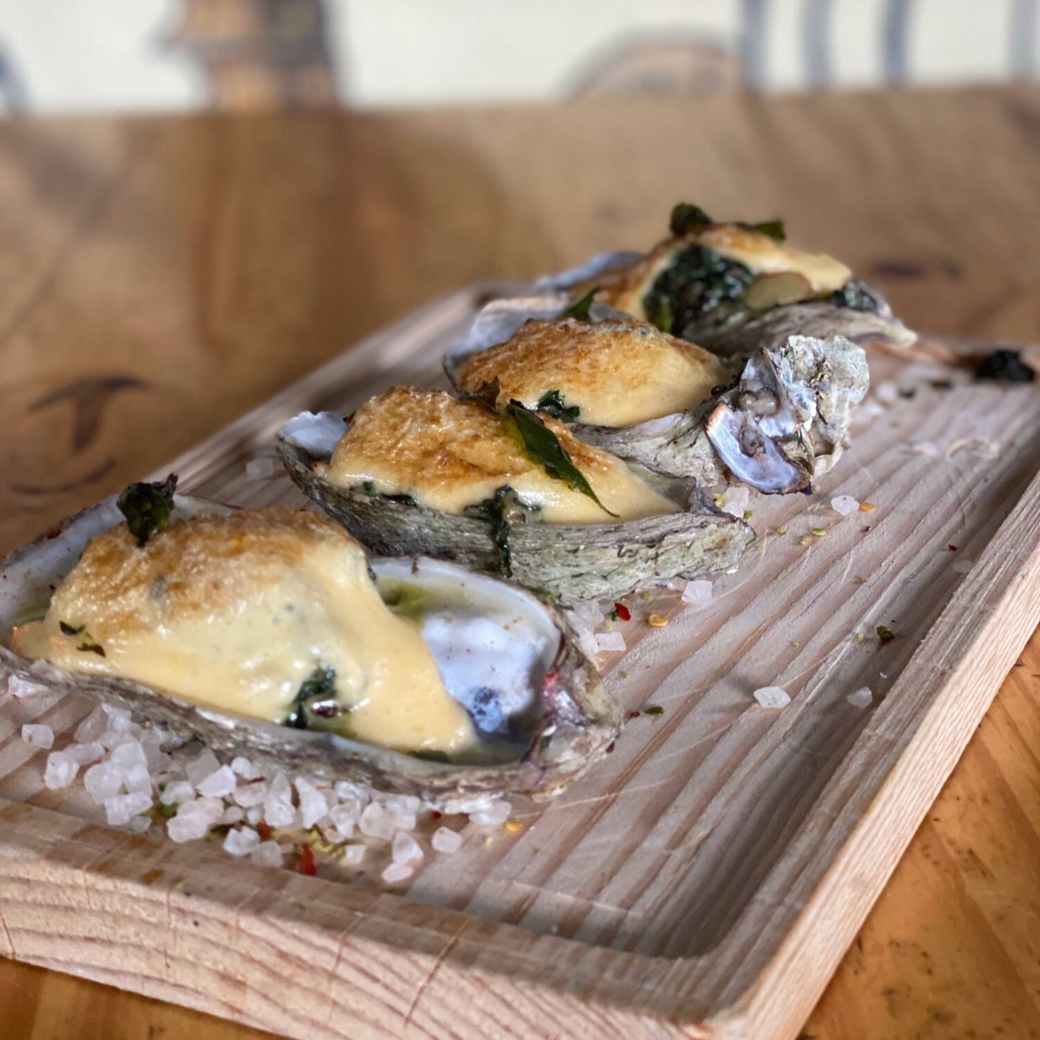 Orden de 8pz de concha seleccionada preparadas estilo rockefeller con nuestra salsa estilo holandesa.