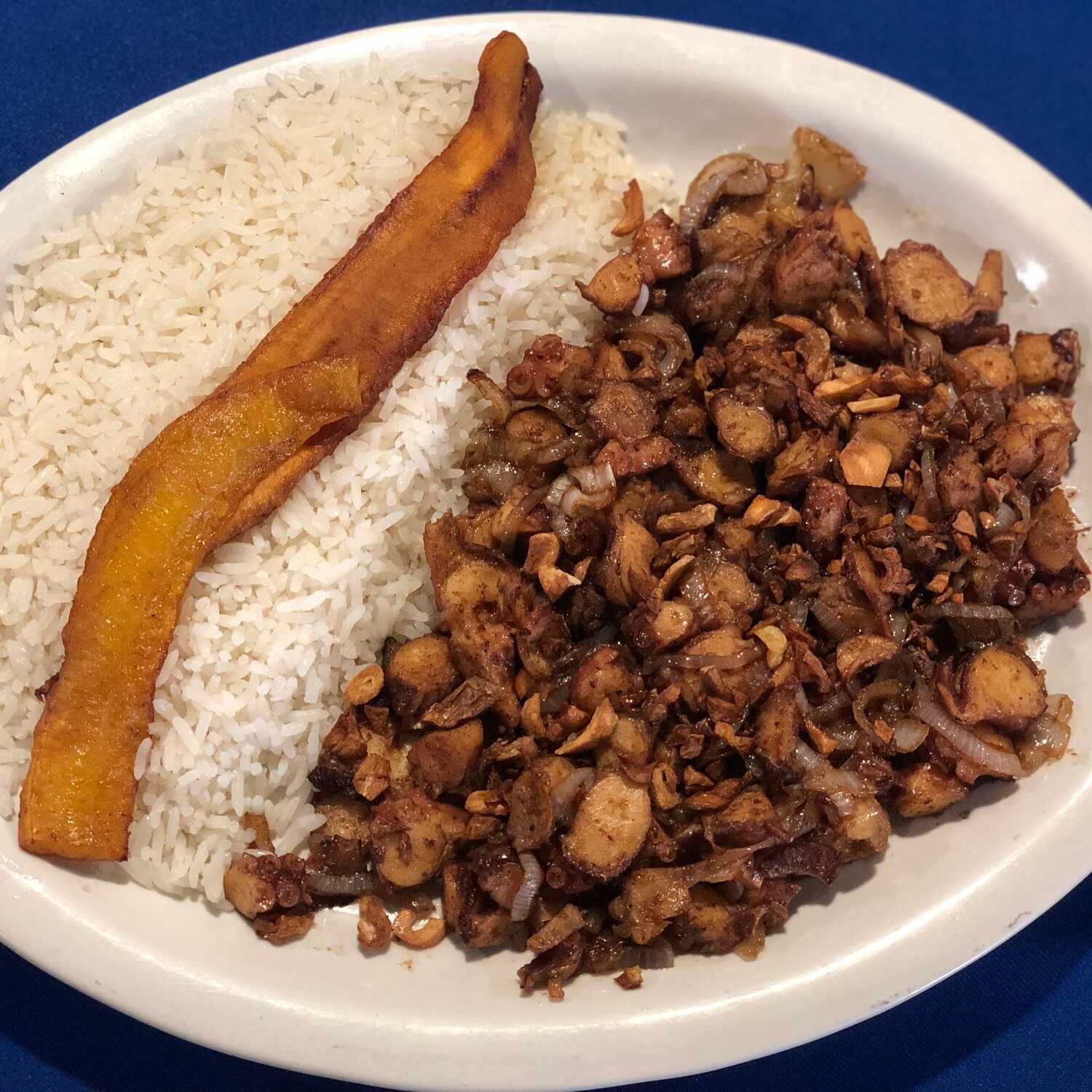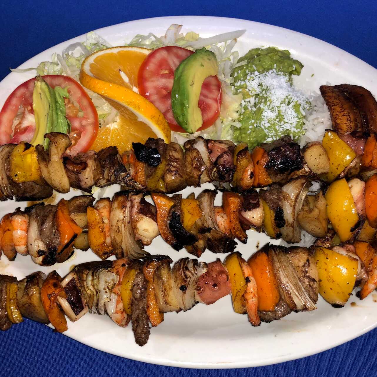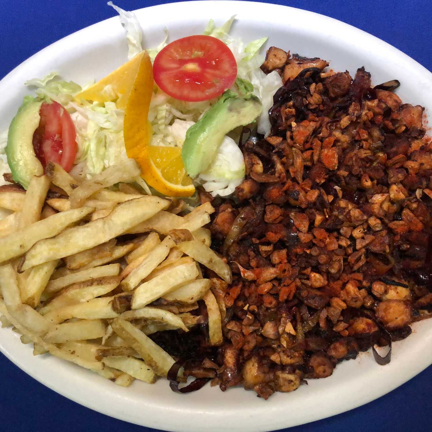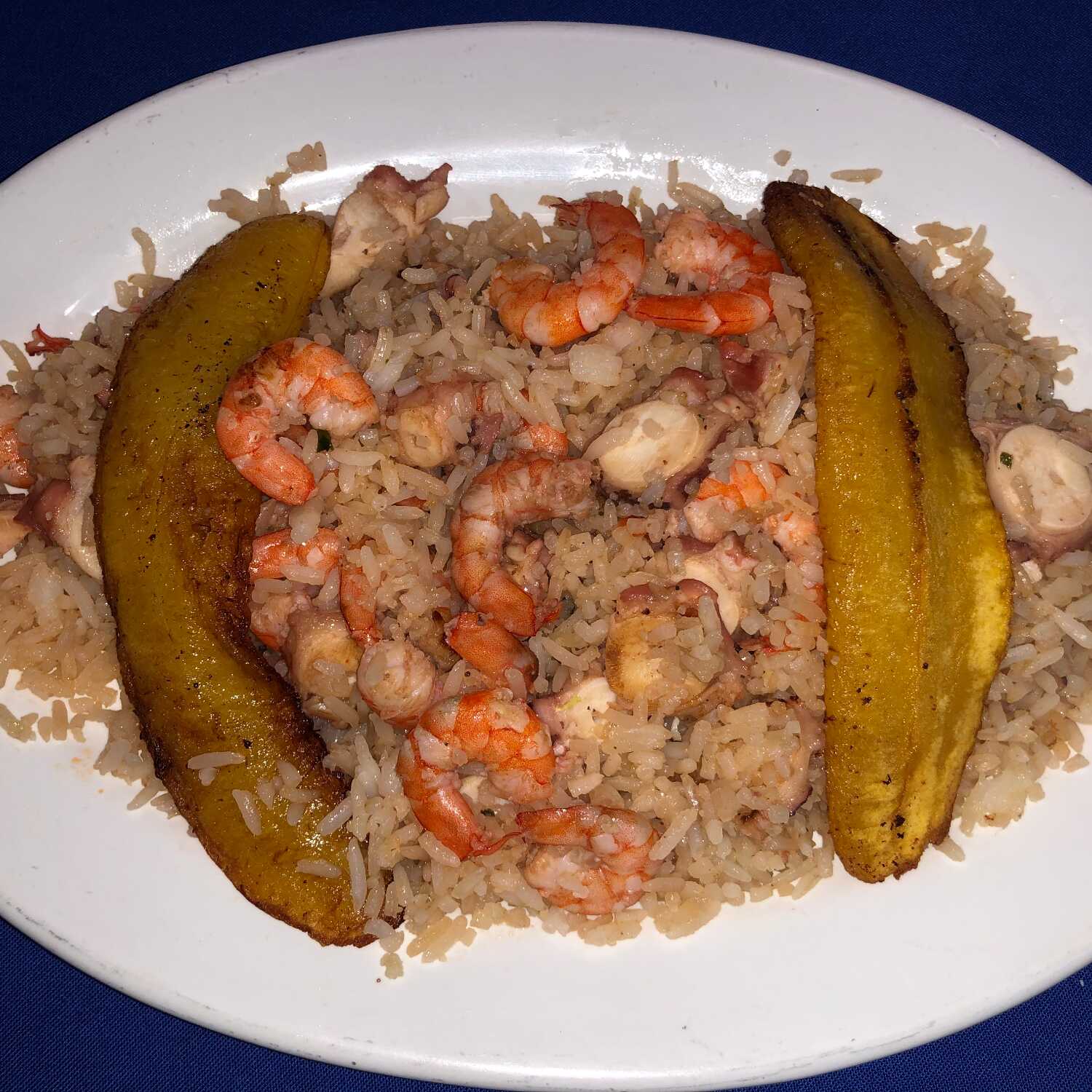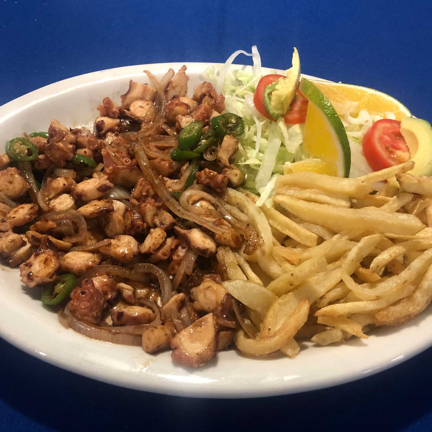 Combinado carne de res, camaron, pulpo, jaiba, caracol, cebolla y pimientos