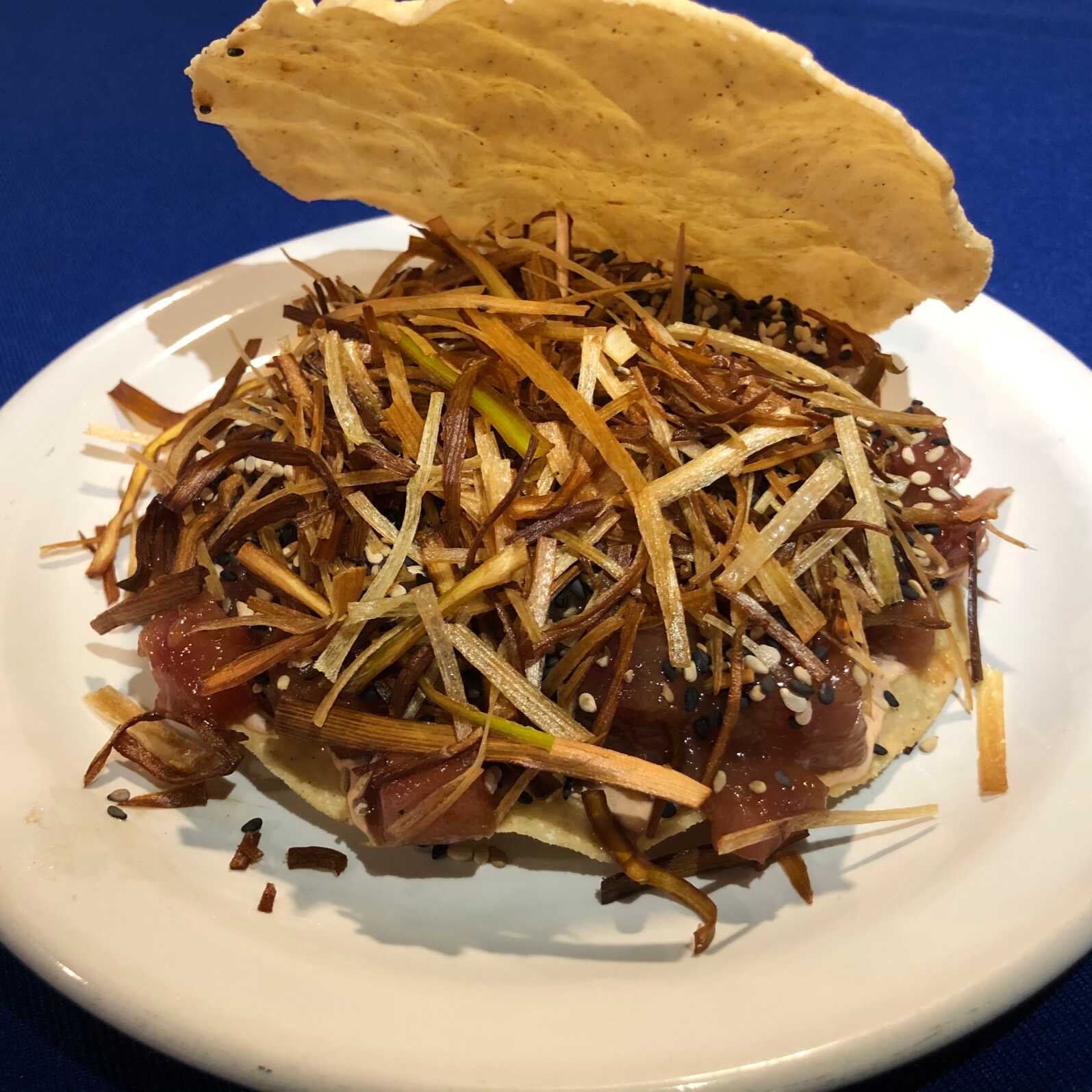 Atun al tamarindo con chile, Adereso mil islas, Ajonjoli y Poro