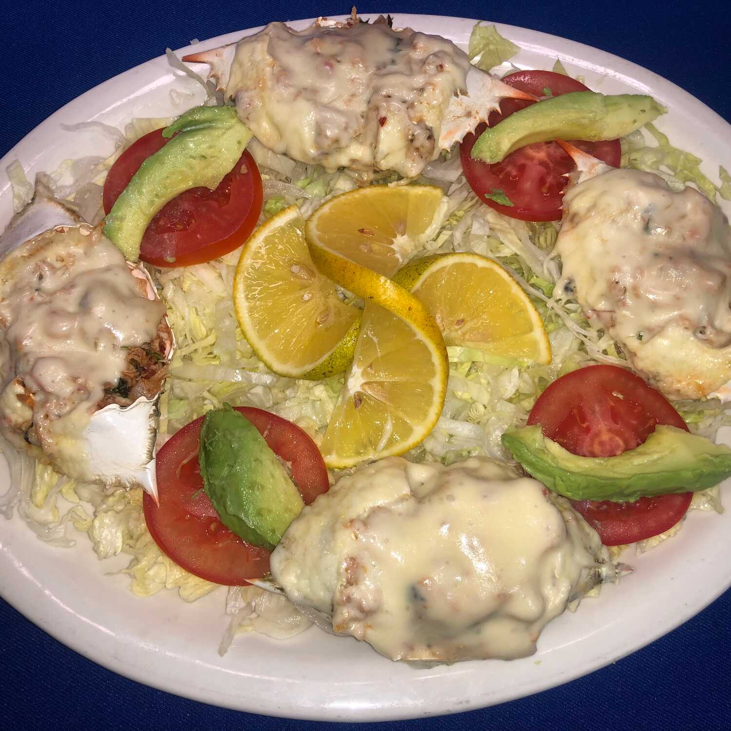 Rellenas de pulpa de jaiba y gratinadas con queso manchego