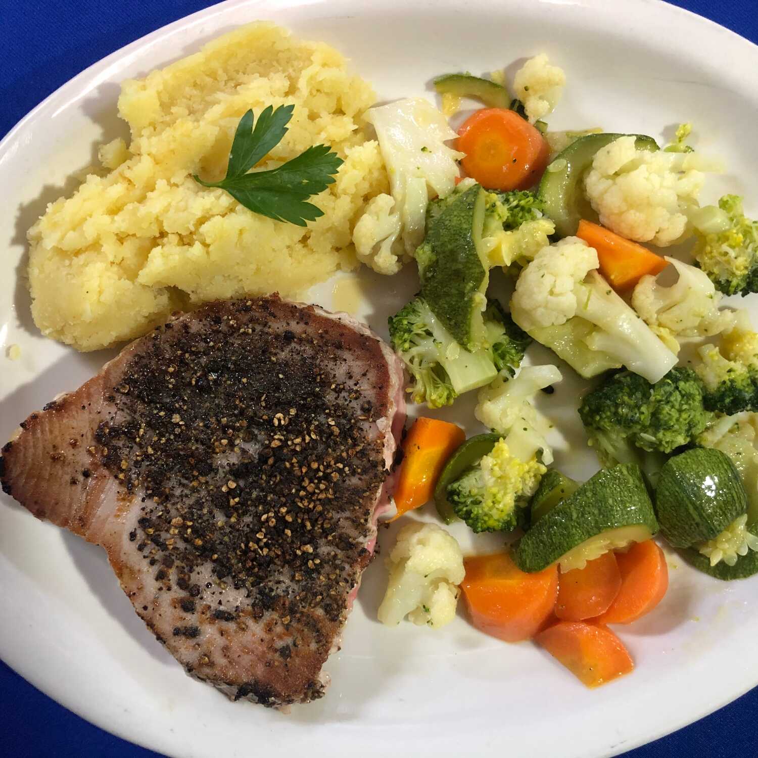 250gr aprox.. acompañado de pure de papa y verduras a la mantequilla