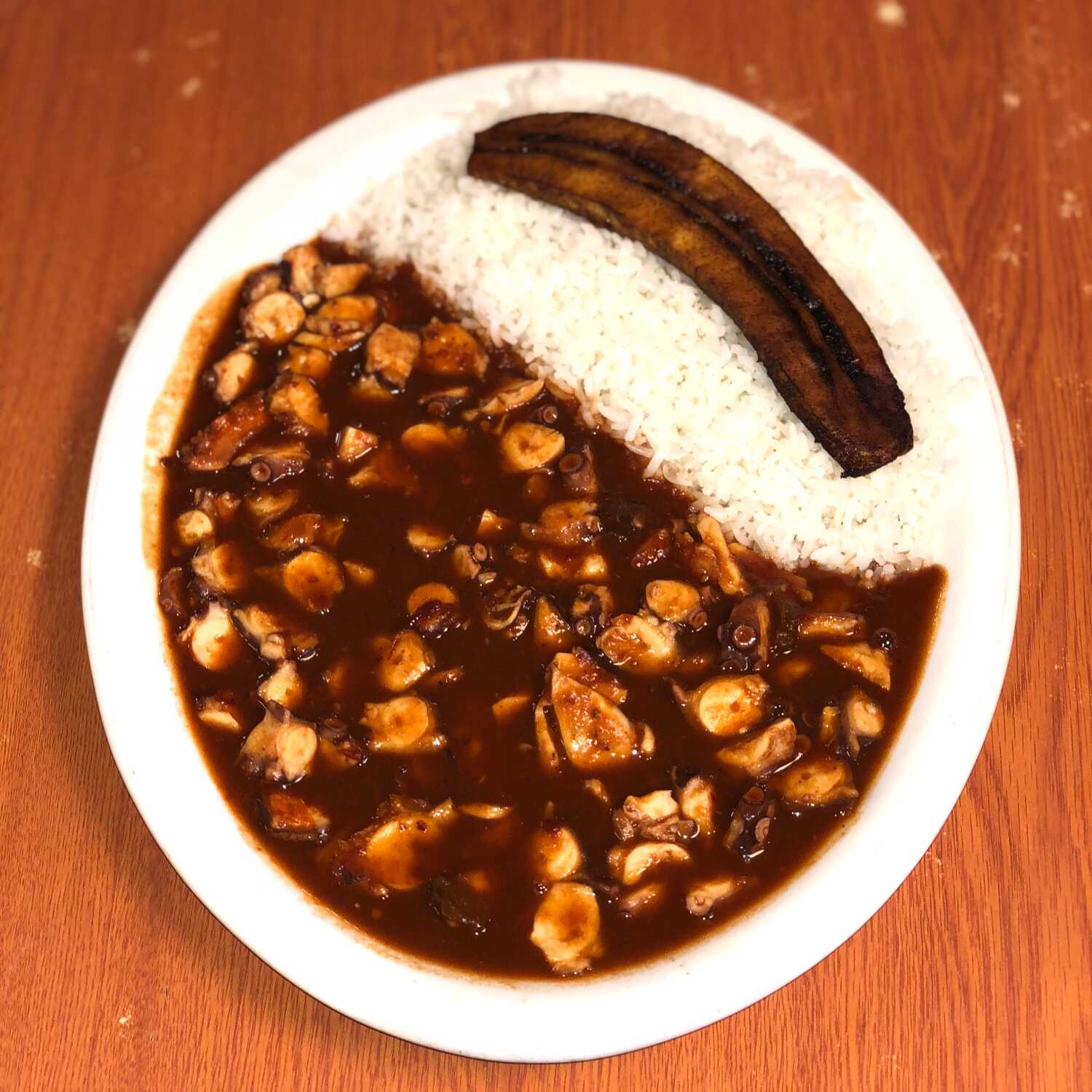 Guisados en su propia tinta con cebolla, jitomate, cilantro, aceitunas y chiles güeros (250gr aprox..)