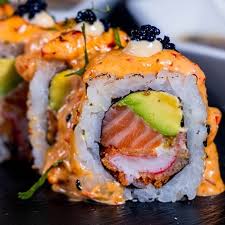 (CAMARON,TEMPURA,ESPARRAGOS,PHILADELPHIA,CUBIERTO DE SALMON Y FLAMEADO CON MAYONESA PICANTE)
