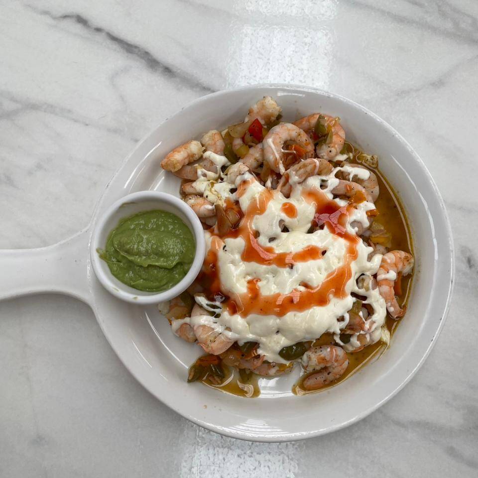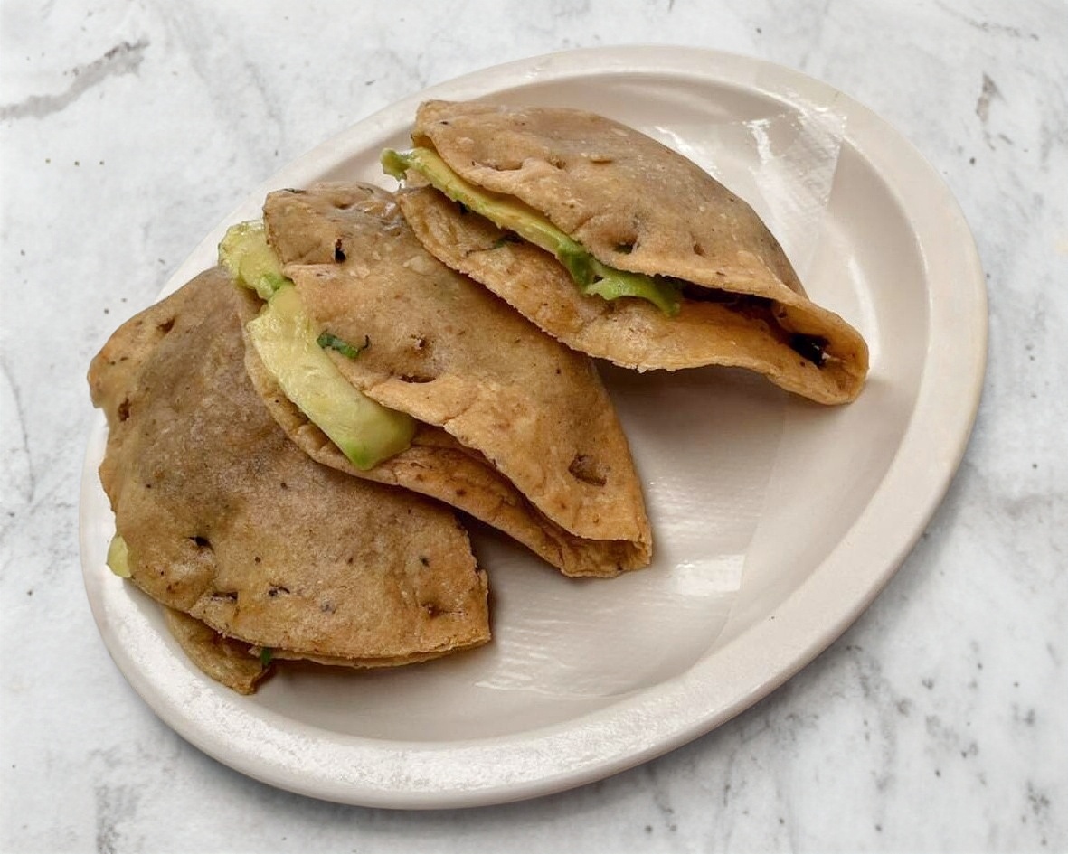 SASONADOS CON PIMIENTO MORRON, CEBOLLA, GRATINADOS CON QUESO OAXACA ACOMPAÑADOS CON GUACAMOLE Y TORTILLAS DE HARINA