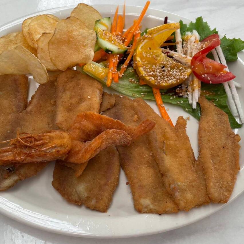 (CAMARON TEMPURIZADO,SALSEADON CON MAYONESA Y ENSALADA VERDE)