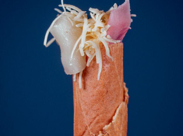 Queso de bola, jamón y piña.
