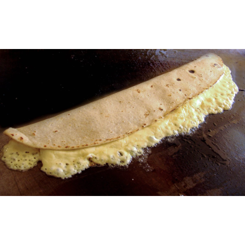 Tortilla azul hecha a mano de 45 cm, 200gr de queso Oaxaca deshebrado. La verdura, salsa y limones van aparte.