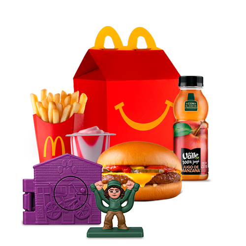Pide tu Cajita Feliz de Hamburguesa con Queso; Incluye papas kids y Yoplait