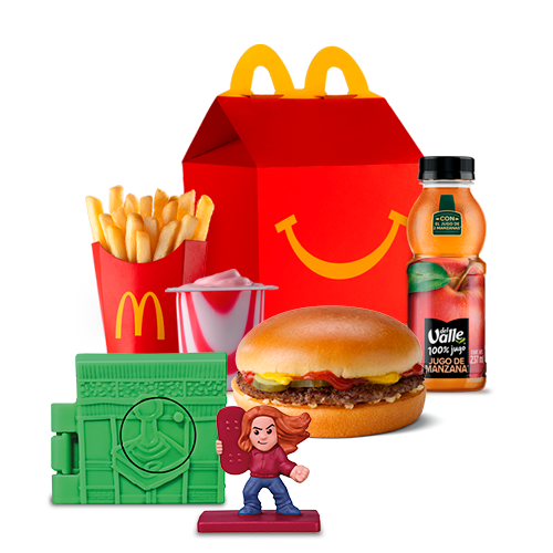 Pide tu Cajita Feliz de Hamburguesa; Incluye papas kids y Yoplait.