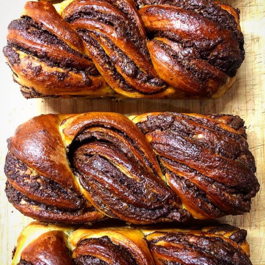 El famoso Babka de chocolate de Merkava, pan trensado con chocolate y crema de avellana