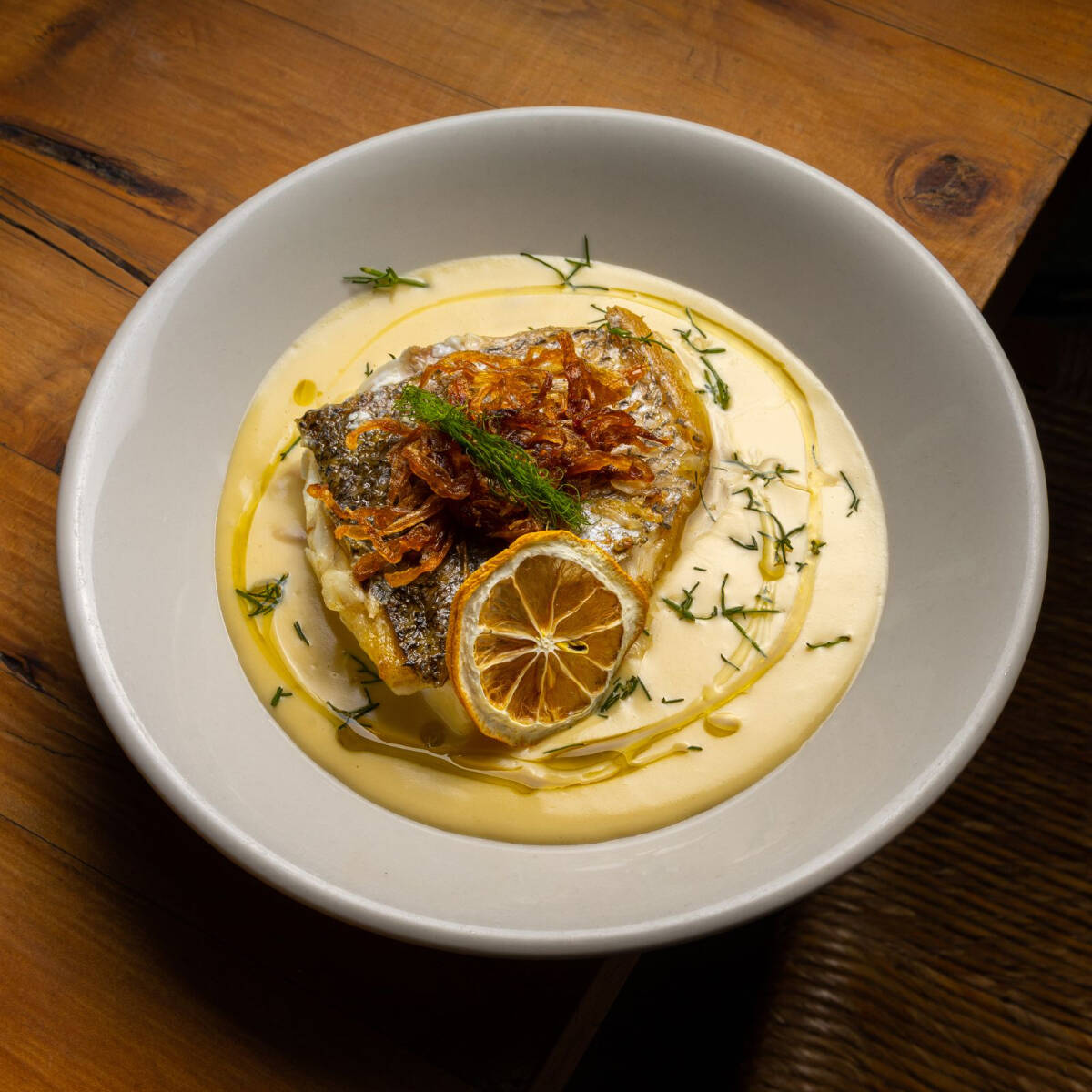 Tradicional salsa de los judios sefarditas a base de limon amarillo ,acompañado de pasta orzo,cebolla frita e hinojo