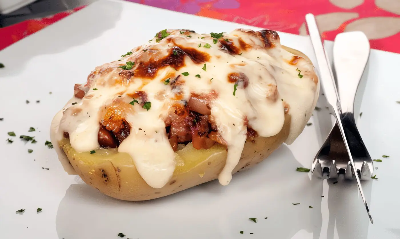 Rellena de crema preparada a base de tocino, cebollín, mantequilla y queso.