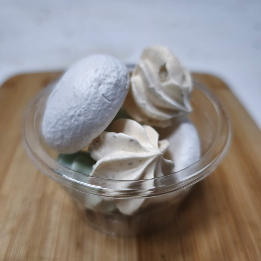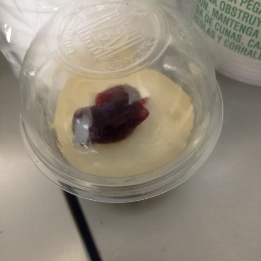 Rico merengue (suspiro) con fresas, leche condensada y crema de leche.