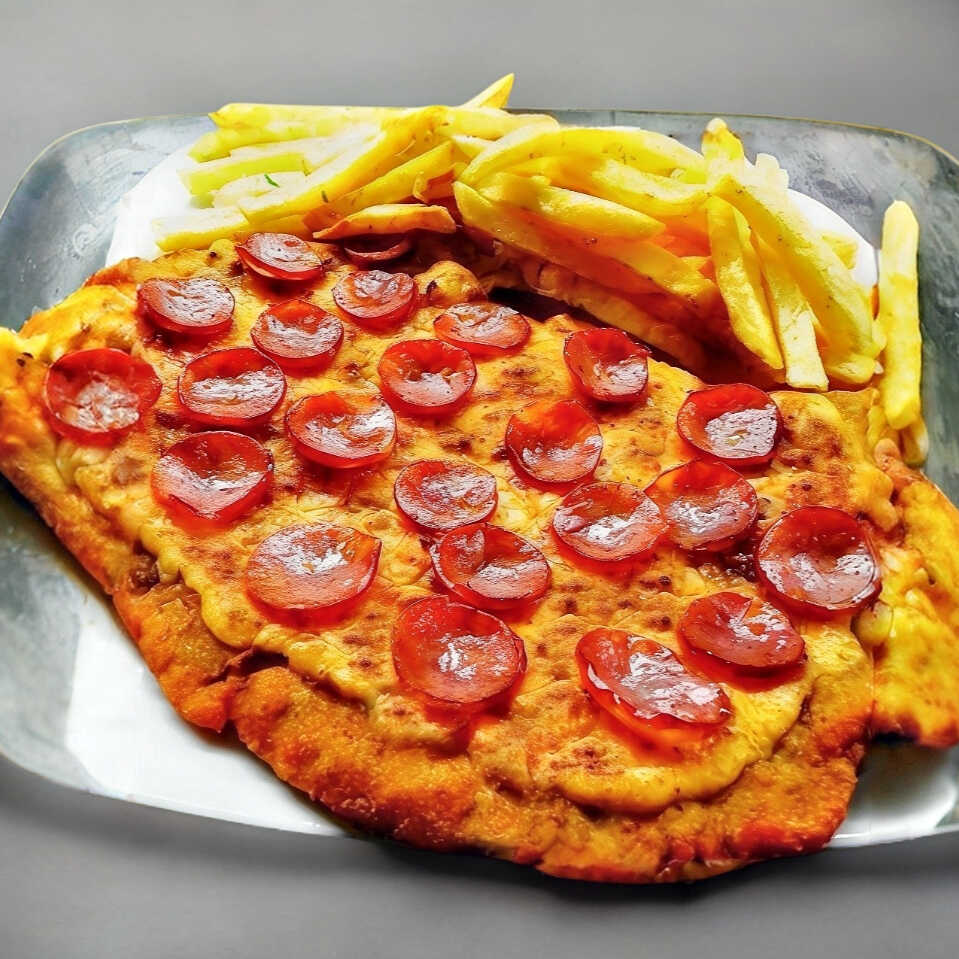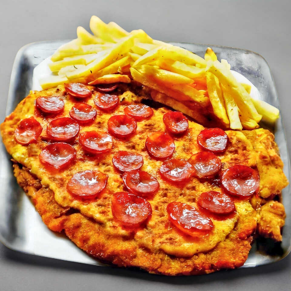 Lo mejor de la pizza en una milanesa, con base de puré de tomate artesanal, queso mozzarella gratinado y pepperoni.