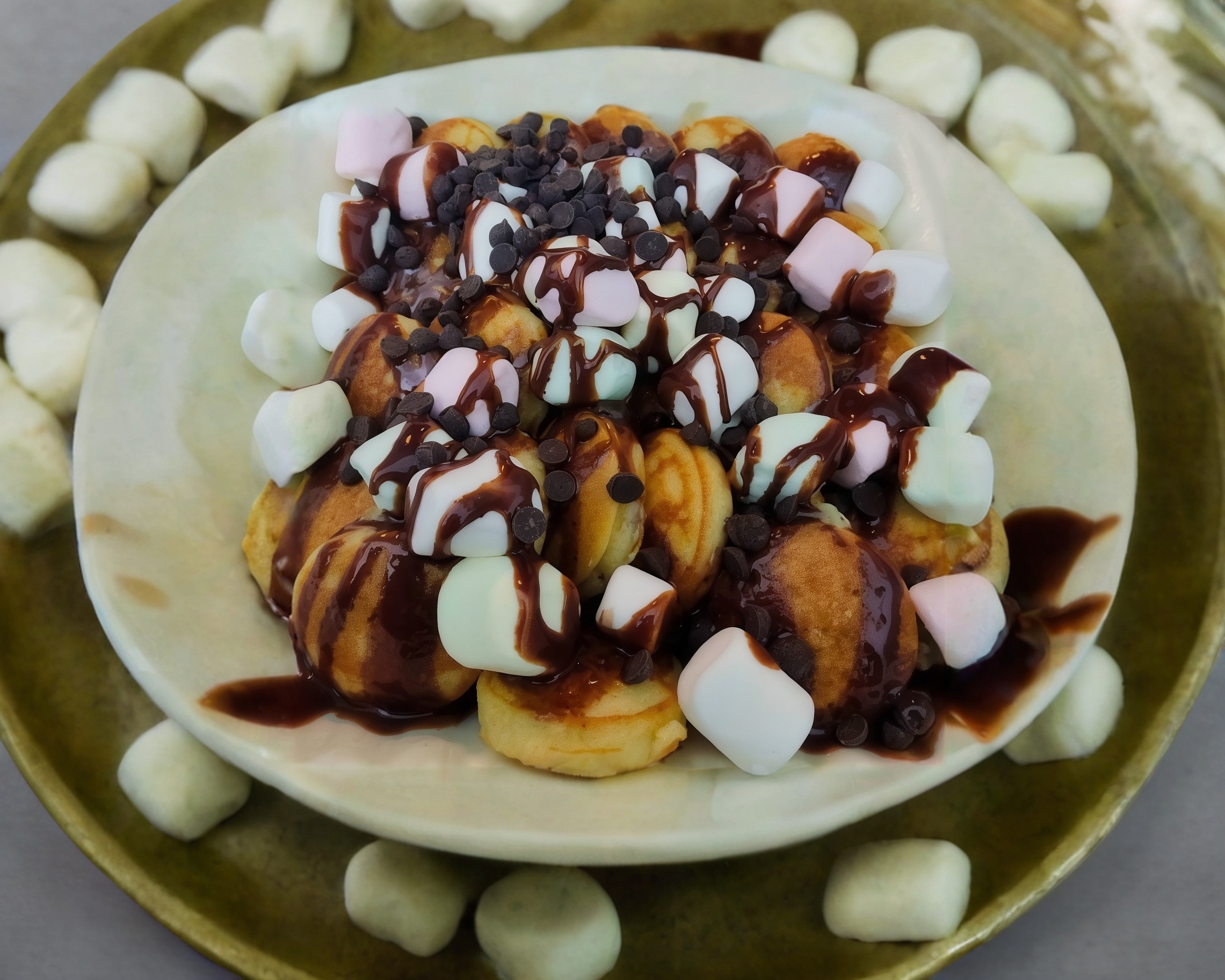 Deliciosos mini hotcakes de 10 piezas, ordena a tu gusto eligiendo una fruta, un jarabe y un toping