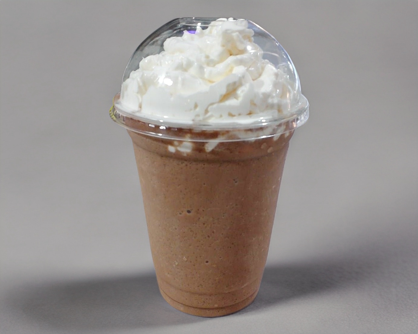 Delicioso frappé de chocolate con chispas de chocolate trituradas servido en un vaso de 16oz