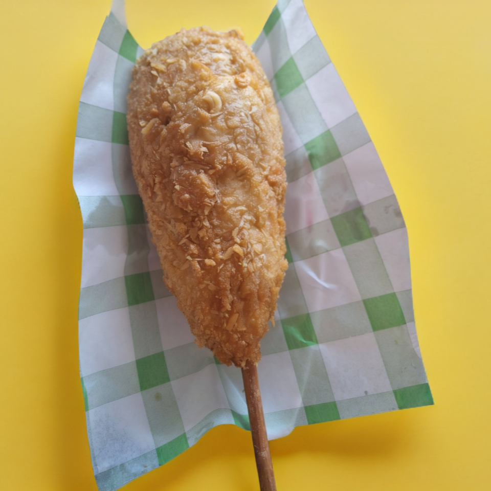 Banderilla con relleno de snickers, cubierta de nuestra masa especial y panko