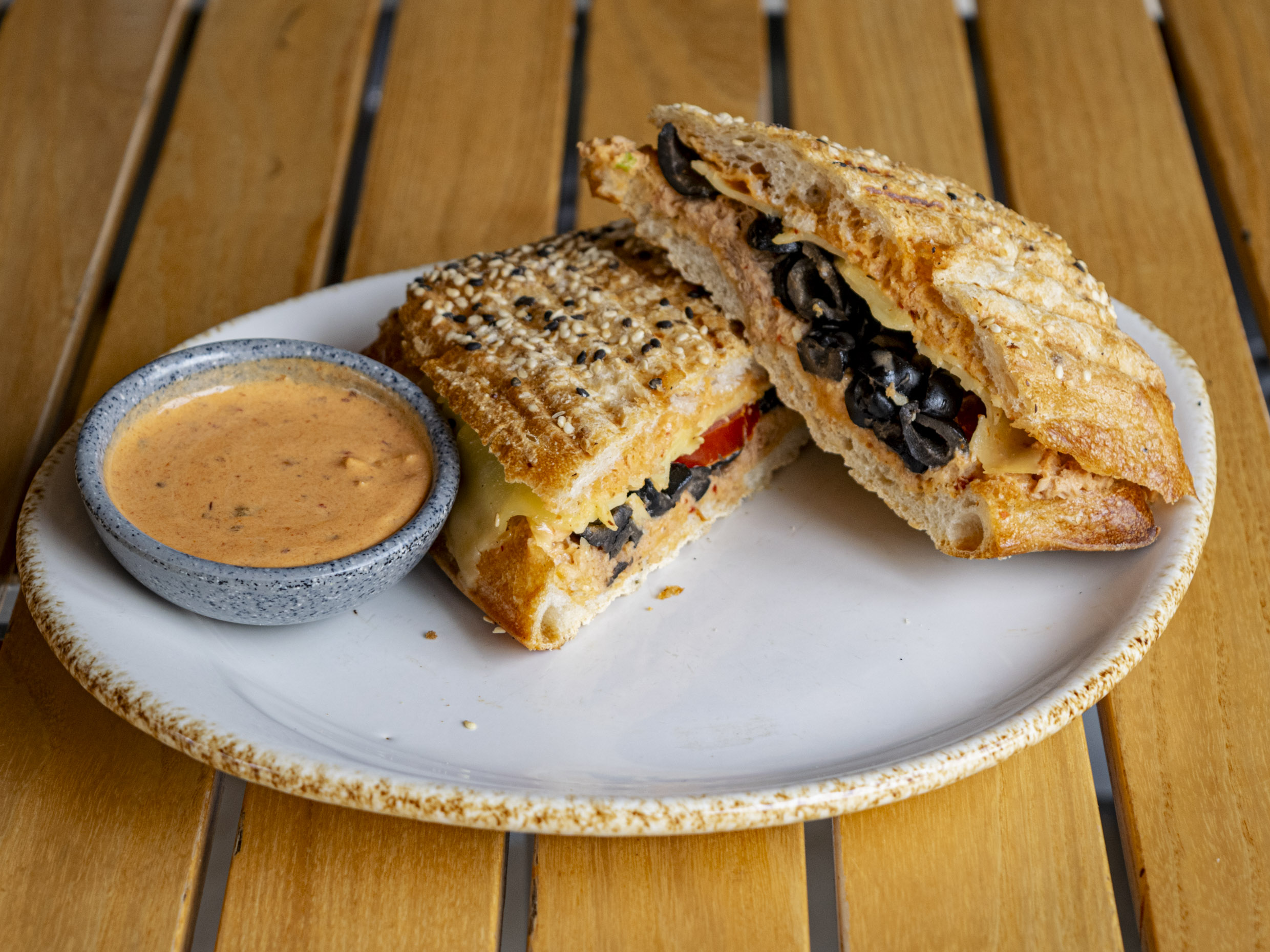 Deliciosa chapata con mayonesa, atún, queso panela, queso gouda, queso amarillo, jitomate, aguacate y lechuga.