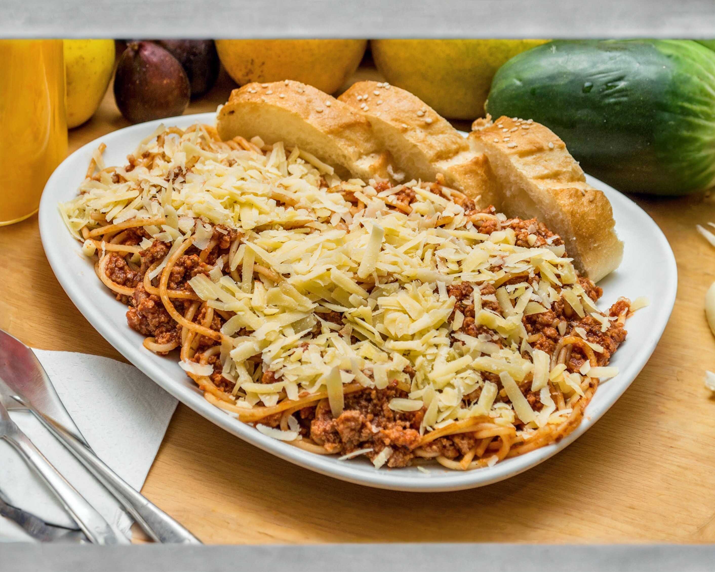 Salsa bolognesa y carne molida con parmesano.