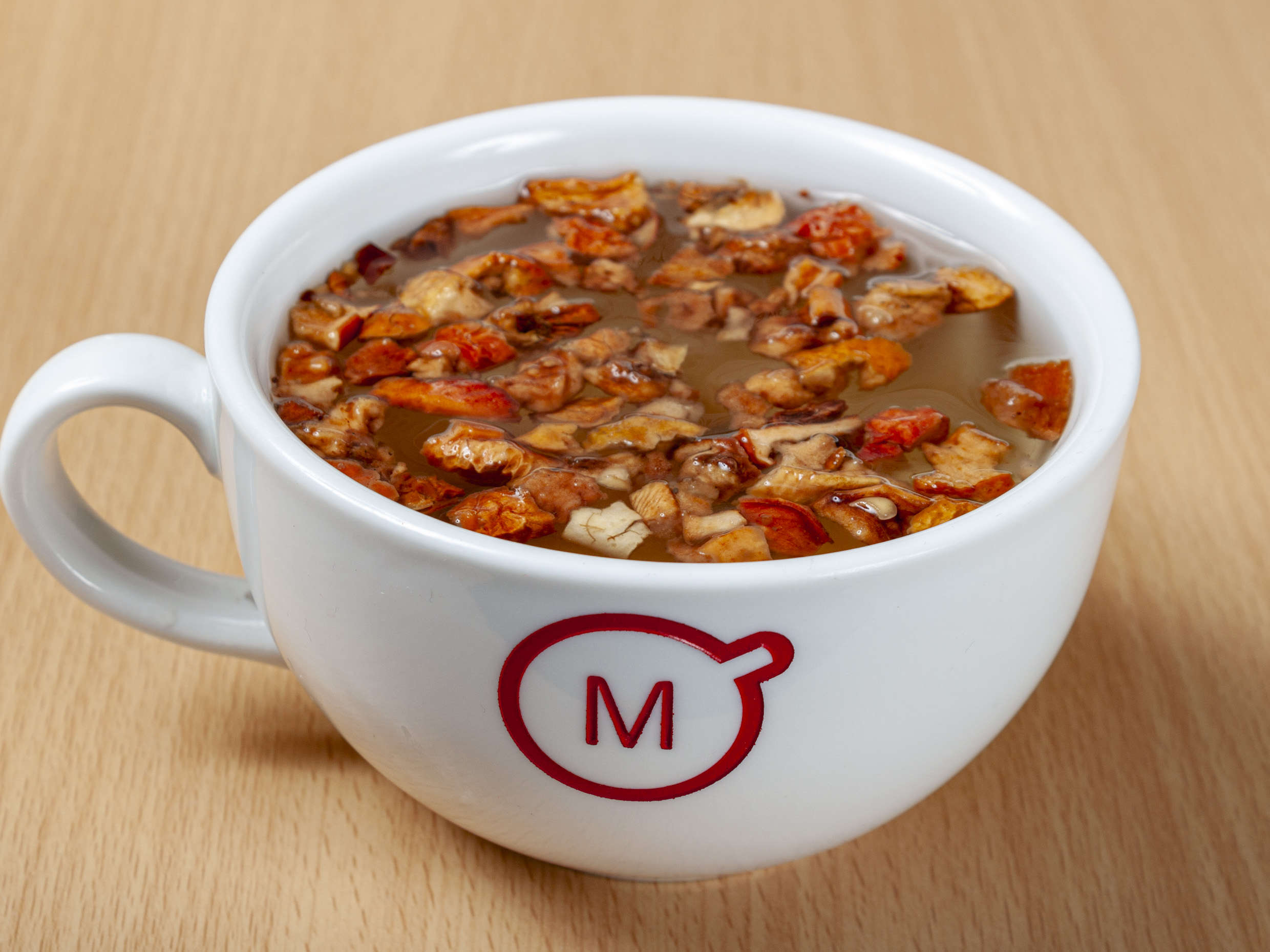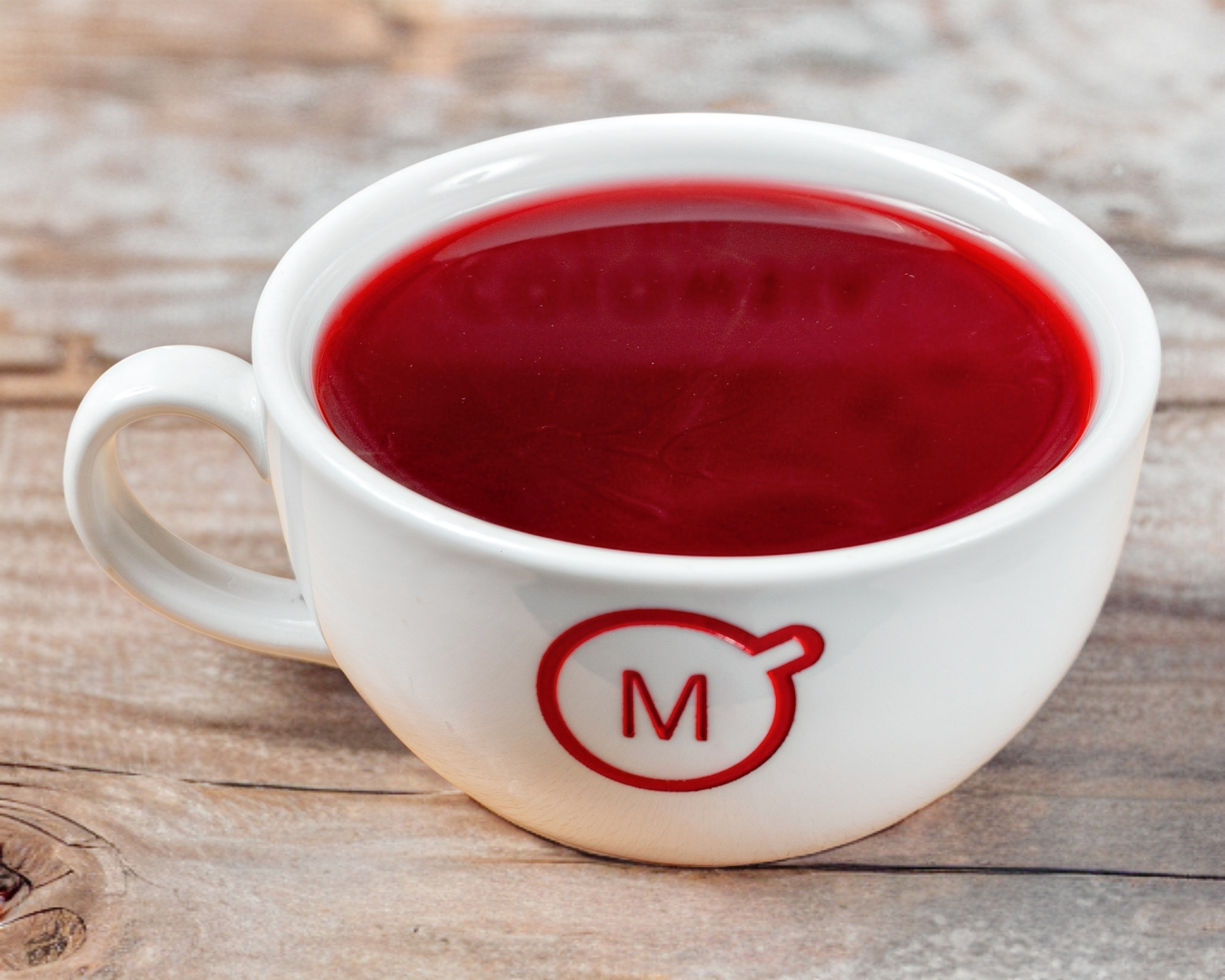 16 Oz. Manzana, jamaica, escaramujo rosa mosqueta, cáscara de naranja, flores de aciano y saborizante natural de ruibarbo.