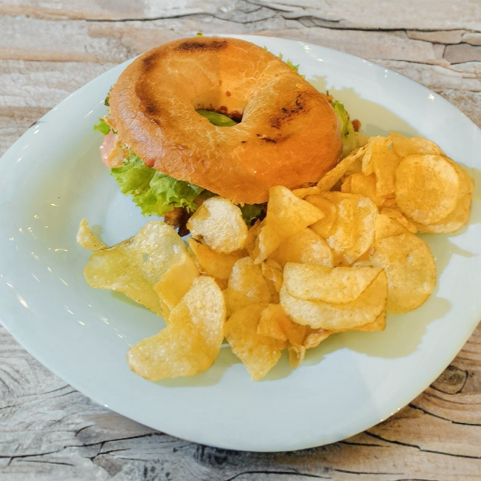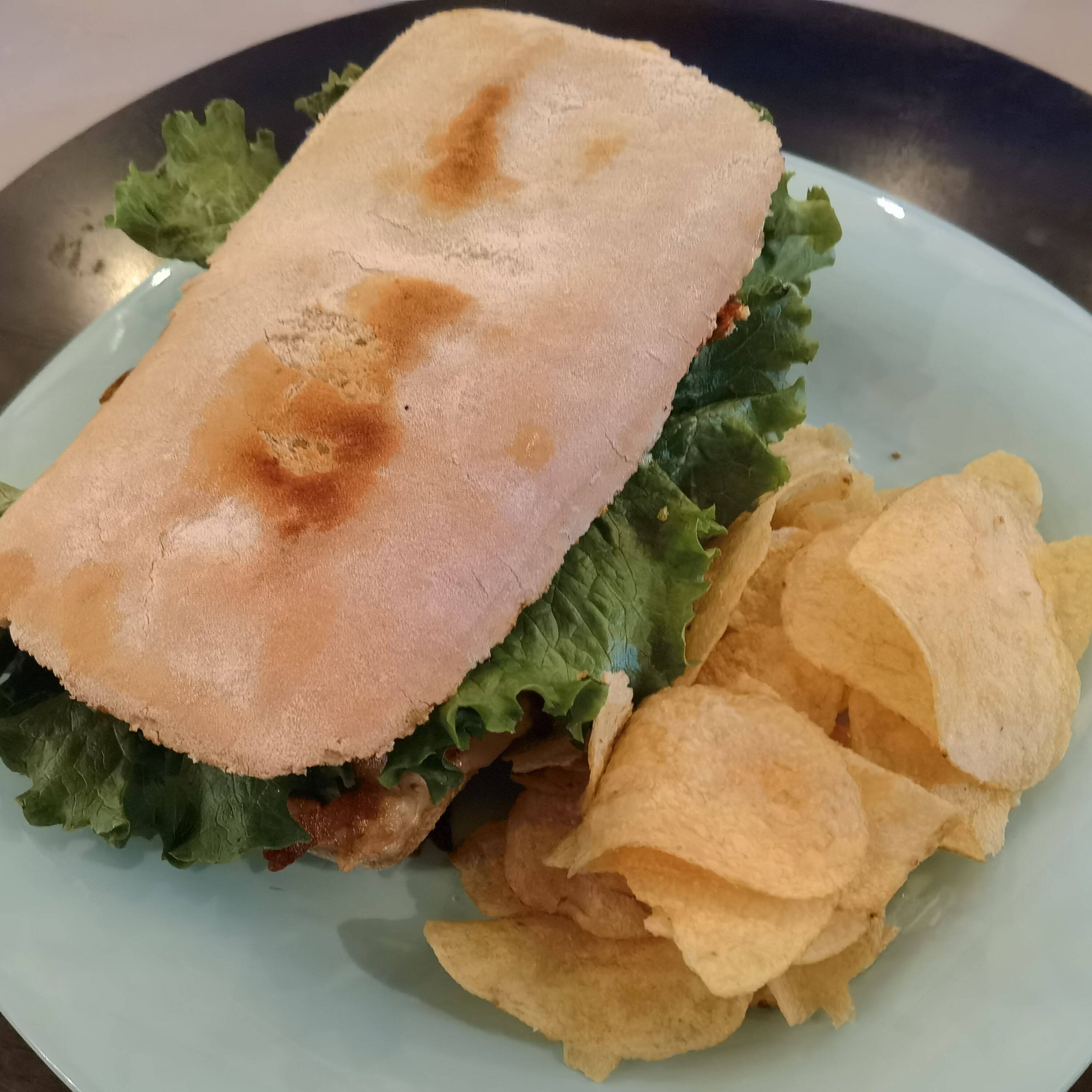 Jamón de pavo, queso manchego, nuez, arándano, lechuga, mayonesa, chipotle dulce y papas fritas.