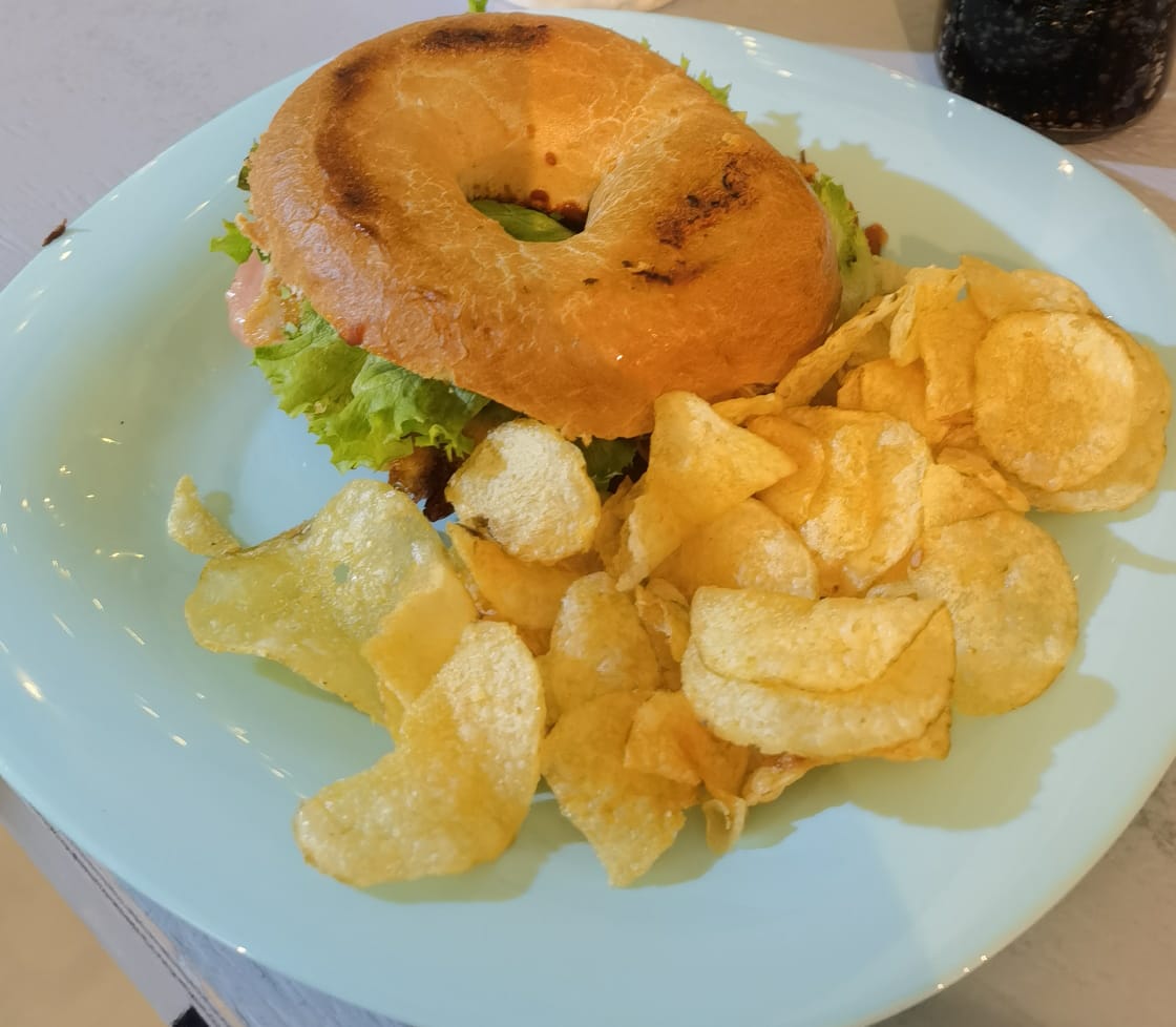 Atún con mayonesa, queso manchego, rajas, aguacate, lechuga y papas fritas.