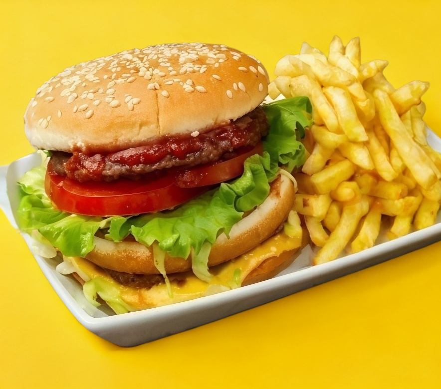 Hamburguesa con Queso y Tocino.*1 + Hot Dog Con Tocino y Queso.*1 + 60g de Papas a la Francesa*1
