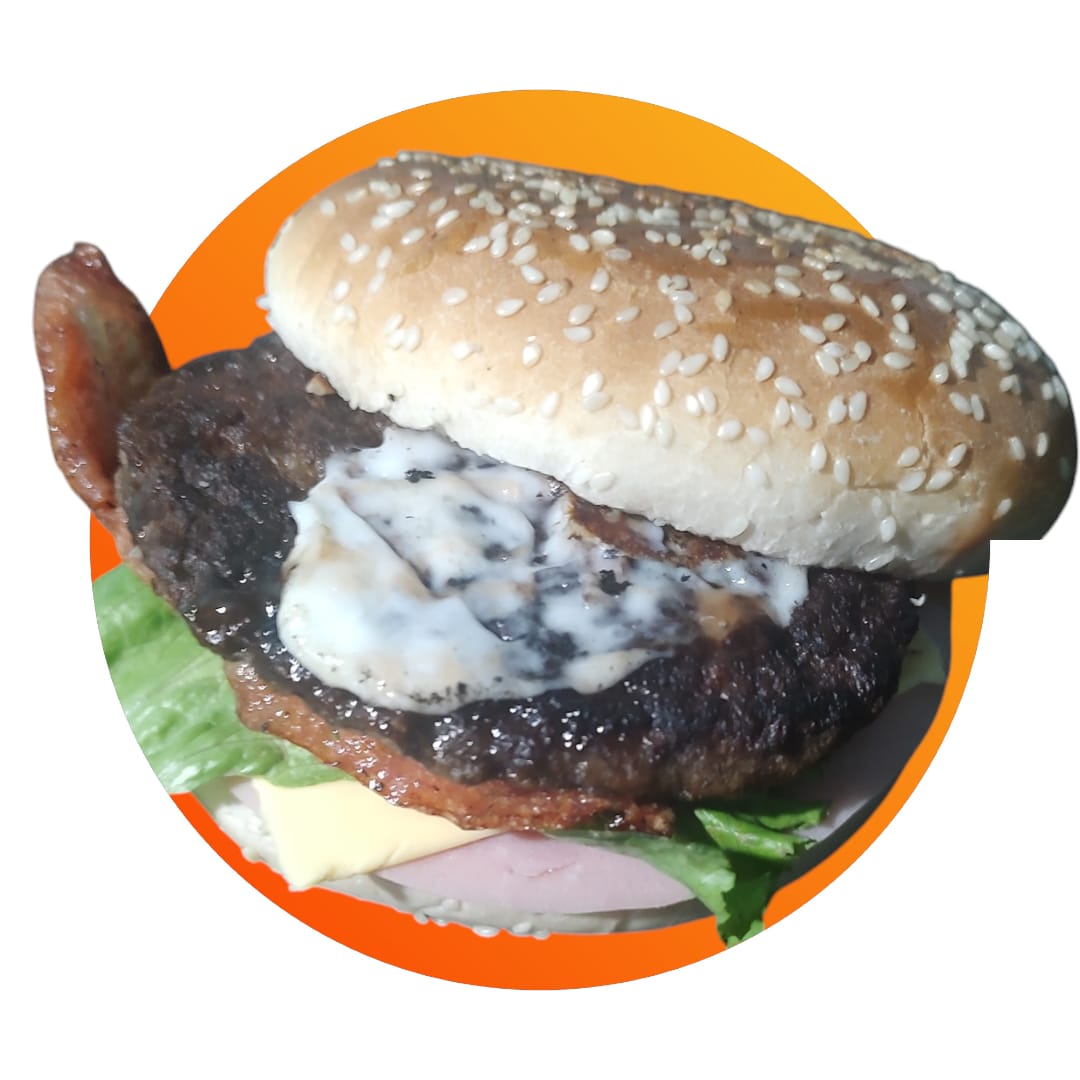 Carne y 2 tocino queso Oaxaca lechuga queso amarillo y aderezo