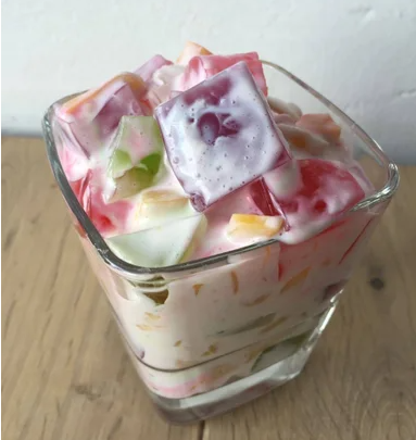 Nuestra gelatina de mosaico con rompope combina cubos de gelatina de colores con una base cremosa y suave. Un postre clásico, ligero y delicioso.