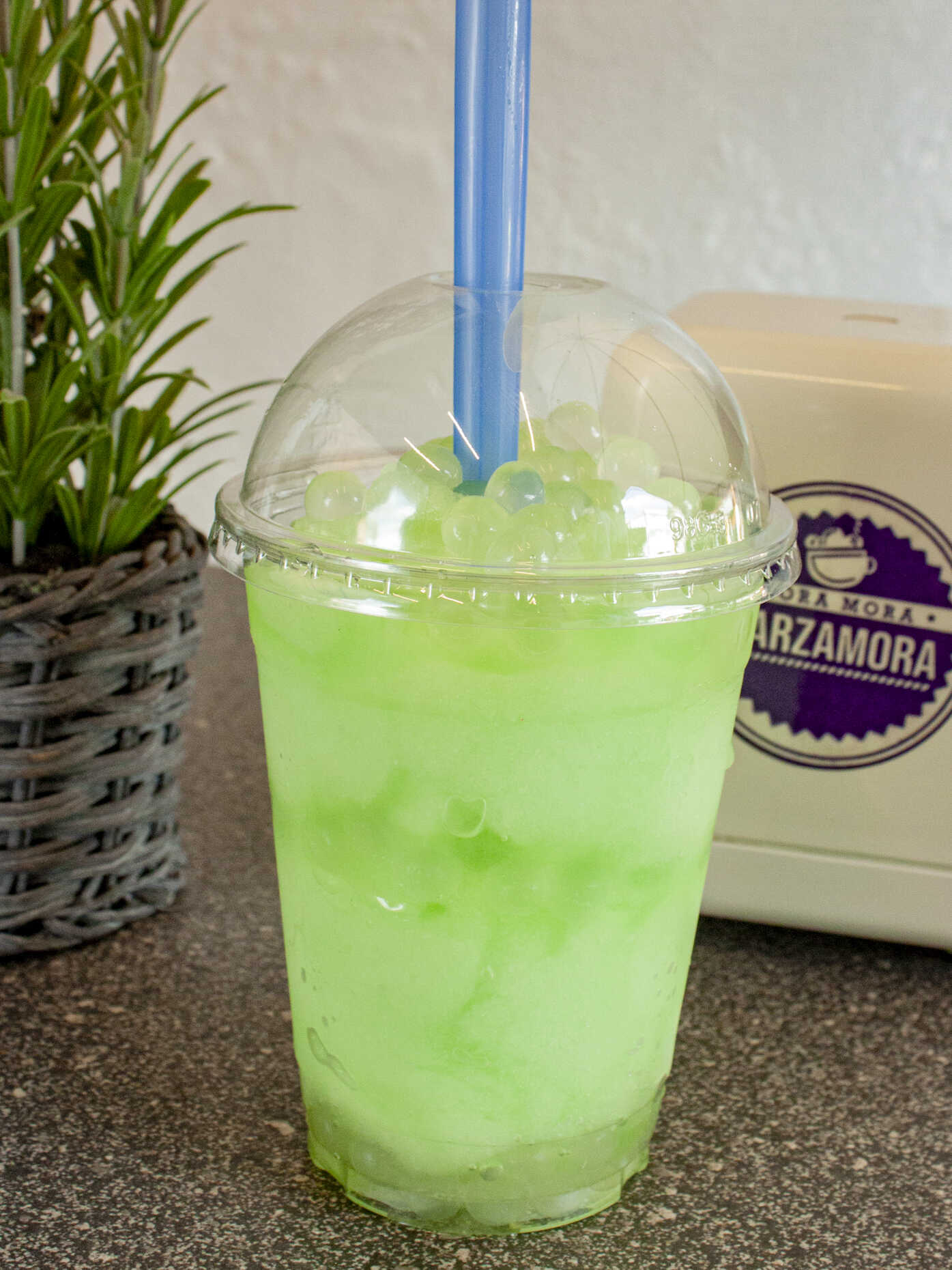 Smoothie con sabor a elegir y jalea molecular a elección.