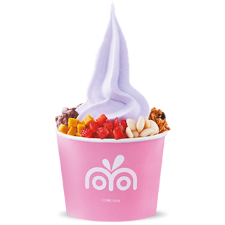 Nieve de yogurt natural sin grasa 185 g con cuatro toppings a elección.