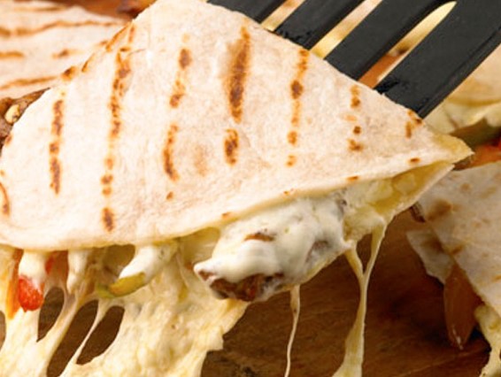 1 Sincronizada de jamón con quesillo, queso americano y pico de gallo