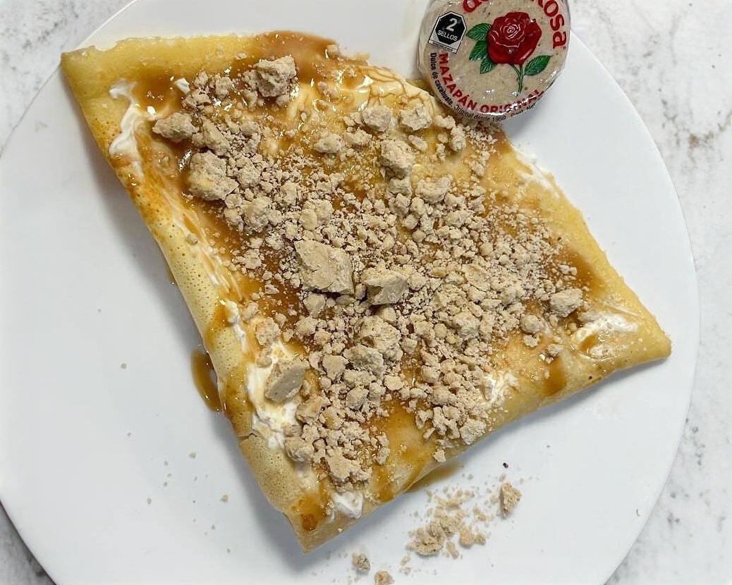Crepa dulce con Queso Philadelphia, cajeta quemada y mazapan