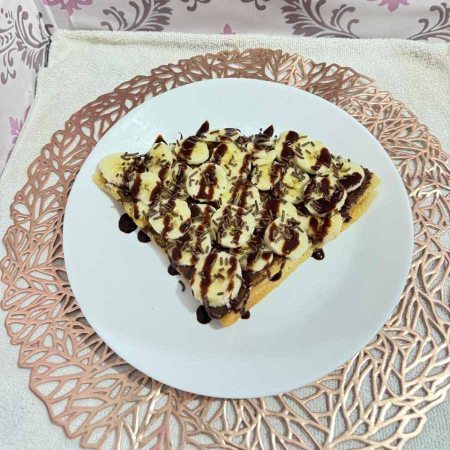 Crepa dulce con una porción de nutella untada con trozos de plátano natural.