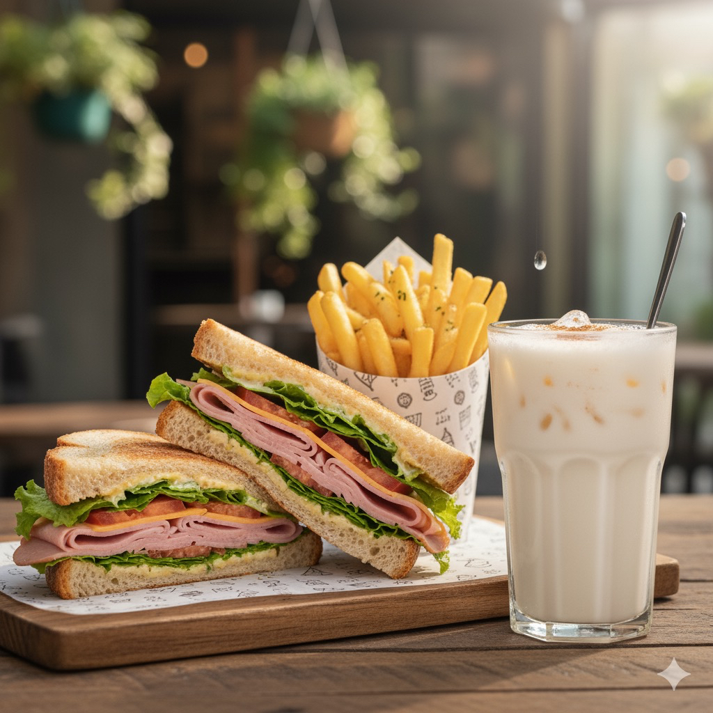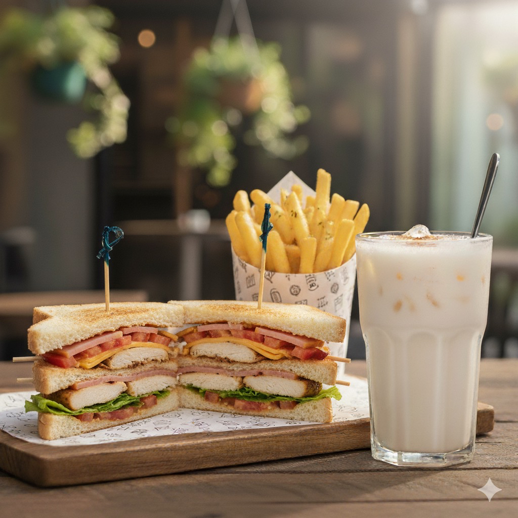 Club Sandwich + Papas + Agua de Sabor