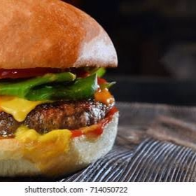 carnes de res, bollo brioche, BBQ, queso american, mayonesa, catsup, mostaza, lechuga, jitomate, cebolla, chiles
