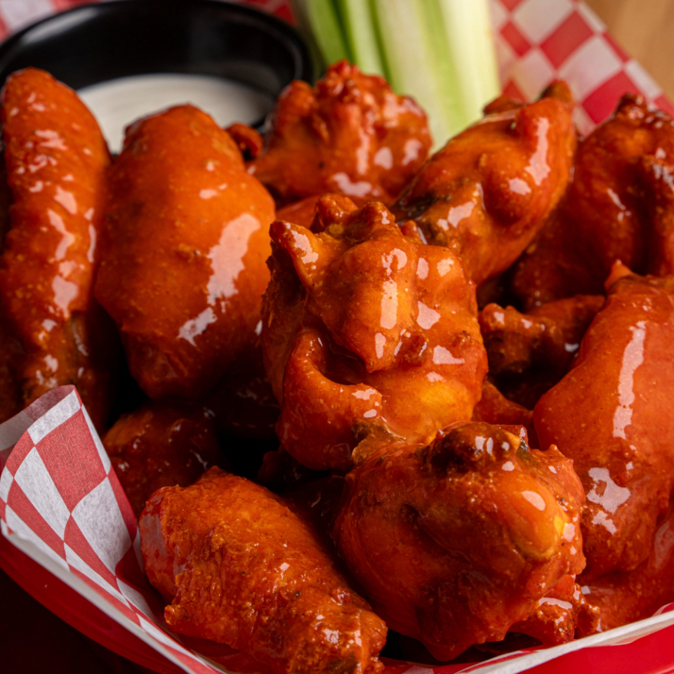 Medio kilo de alitas (calidad Pilgrism´s premium), incluye aderezo ranch, porción de palitos de zanahoria y apio.