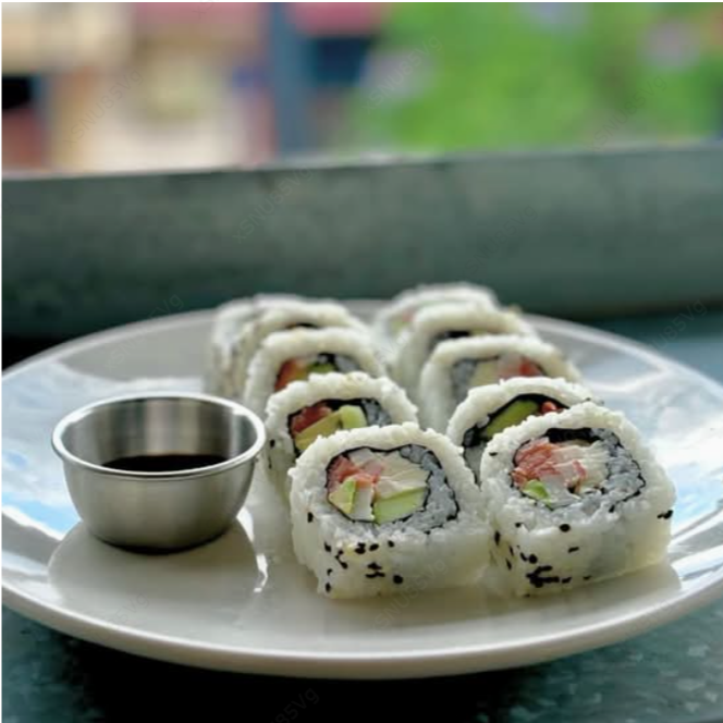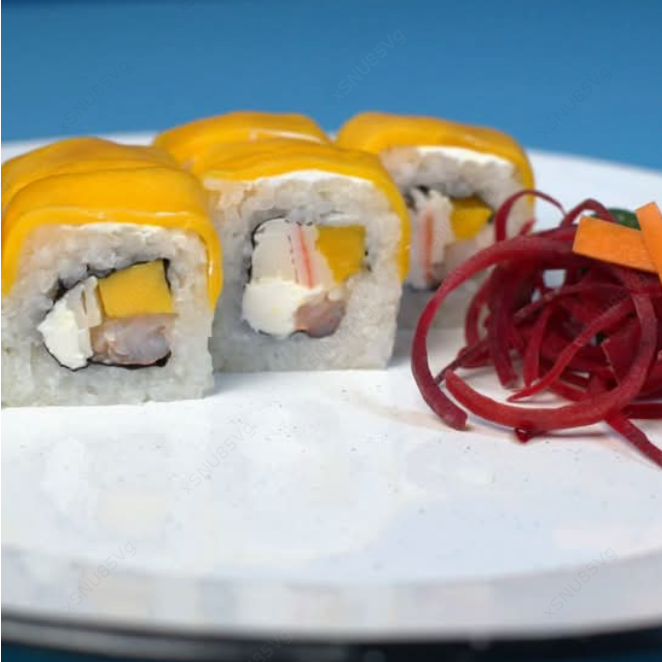 XD: Camarón, cagrejo, mango y queso philadelphia. XF: Alga nori.