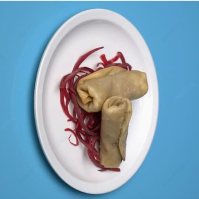 Fritos y rellenos de carne con verduras, salsa de soya y macha.