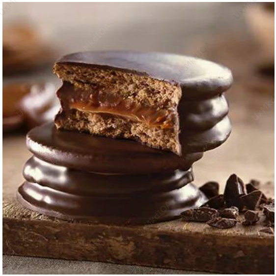 Postre típico argentino relleno de dulce de leche y cubierto con delicioso chocolate.