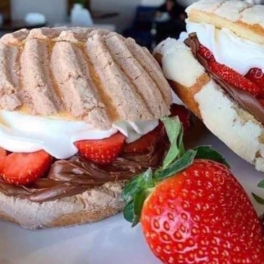 Ricas conchas rellenas de durazno co. Chantilly y topping