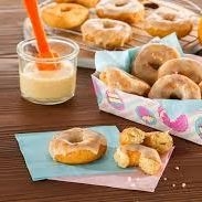 10 mini donitas con base , 1 tipo de fruta y topping a elegir
