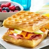 Waffle jamon con queso , lechuga,jitomate, cebolla y papas